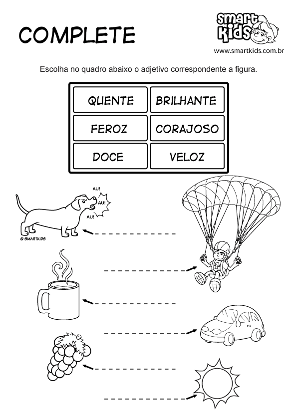 Essa foi apenas uma ideia de exercício com adjetivos que pode ser feita em sala de aula. Abaixo, você encontra outras atividades com adjetivos que podem ser realizadas em sala de aula ou passar como dever de casa.