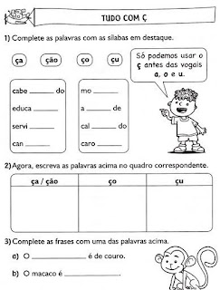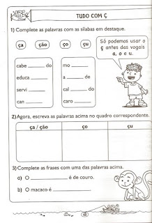 Português 2 Comentários ATIVIDADES COM CEDILHA – ATIVIDADES COM Ç – EMPREGO OU USO DA CEDILHA – ÇA – ÇO – ÇU ATIVIDADES COM CEDILHA – ATIVIDADES COM Ç – EMPREGO OU USO DA CEDILHA – ÇA – ÇO – ÇU SEU COMENTÁRIO ME DEIXA FELIZ!