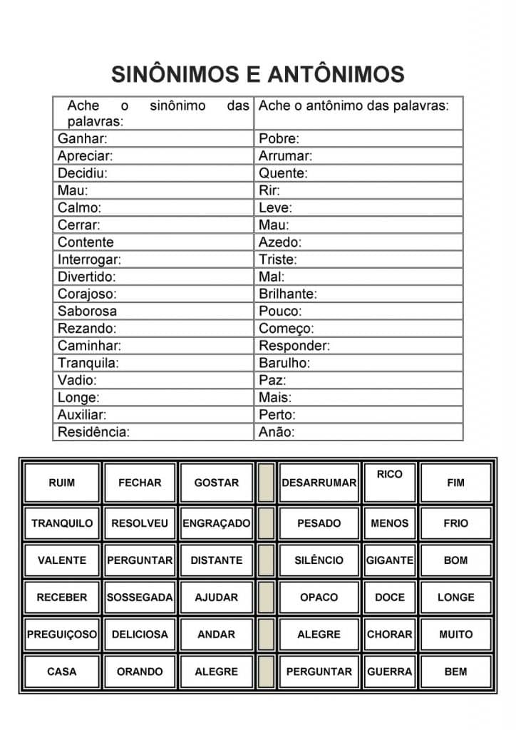 Atividades com sinônimos e antônimos