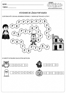 Você encontra exercícios para completar frase, para levar determinado personagem a um ponto específico, atividade de ligação, plural, caça palavras e muito mais.