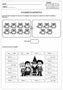 A matemática também pode ser beneficiada com o dia das bruxas. A seguir, algumas atividades que trazem personagens do dia das bruxas e formam problemas a serem calculados.