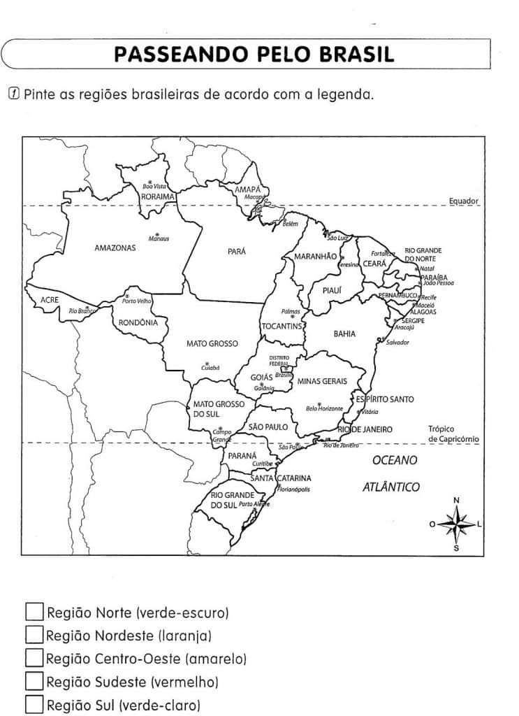 A aplicação de atividades sobre as regiões brasileiras são essenciais. Por isso, abaixo você encontra dicas de atividades que podem ser realizadas em sala de aula ou então aplicadas como dever de casa. O importante é que tenha aulas dedicadas a esse conceito de regiões que é muito importante.