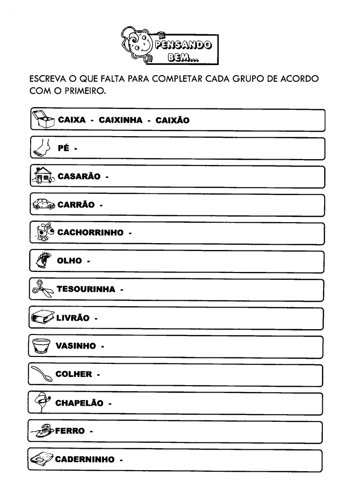 A seguir, você encontra as melhores atividades sobre aumentativo e diminutivo que podem ser usadas em sala de aula e até mesmo como dever de casa. Aproveitando, segue uma dica sobre o dever de casa: Essa é uma forma para que as crianças continuem estudando fora de casa. É sempre bom explicar que podem pedir ajuda dos pais, dessa forma eles se sentem mais seguros e aproxima cada vez mais pais e filhos.