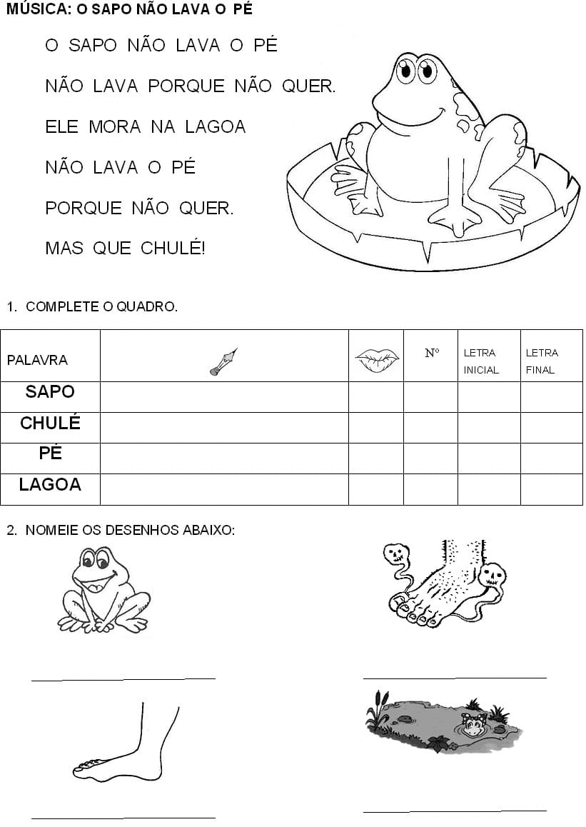 O Sapo não lava o pé Não lava porque não quer Ele mora lá na…