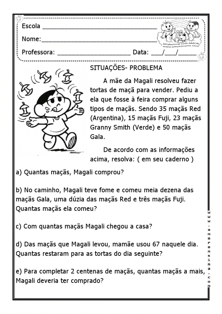 É interessante apresentar problemas divertidos, isso chama a atenção da criança e pode fazer com que os alunos se interessem mais pelos exercícios. Abaixo você encontra dicas para usar em sala de aula e até mesmo passar como dever de casa, desse jeito eles não praticam apenas em sala de aula, mas também em casa.